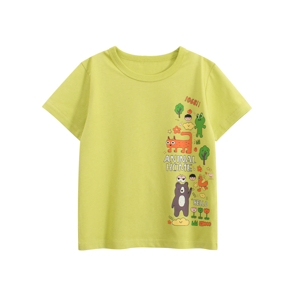 Summer Girls’ Cartoon and Letters Print T-shirt in European and American Style