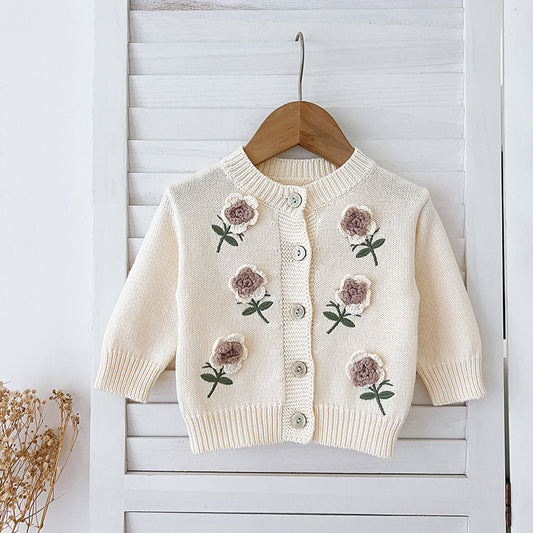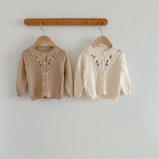 Arrival Baby Girls Comfortable Flowers Embroidery Pattern Knitted Long Sleeves Cardigan