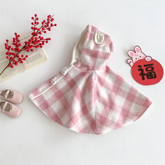 Autumn and Winter Baby Girl Pink and White Plaid Warm Cozy Fleece Cape Popular Shawl