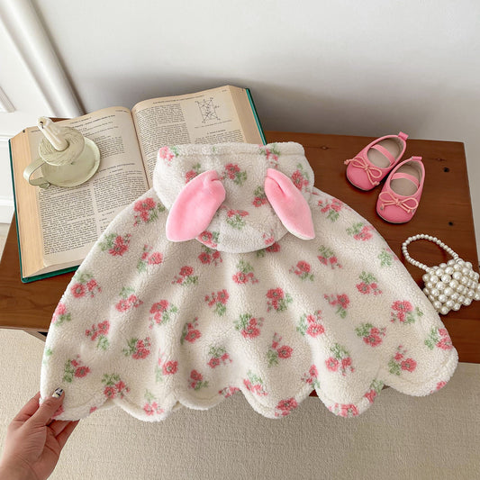 Autumn and Winter Baby Girl Floral Pattern Warm Cozy Fleece Cape Popular Shawl