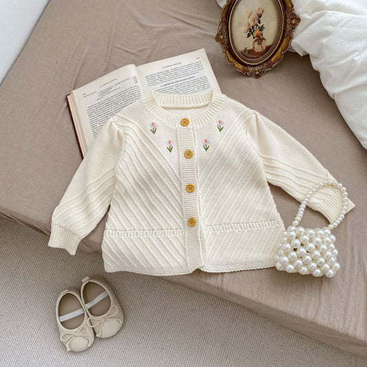 Baby Girl In Autumn Embroidery Long-Sleeved Cardigan
