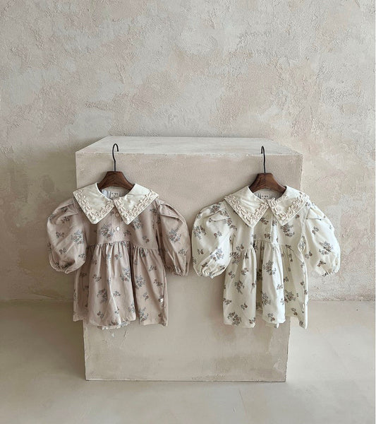 Baby Girls Turndown Collar Floral Soft Spring Vintage Dress