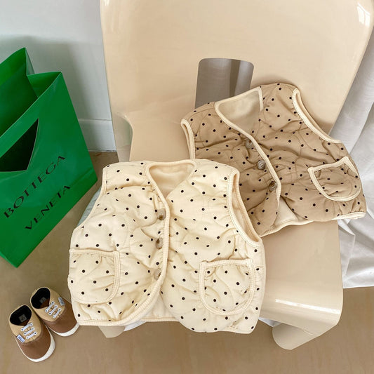 Baby Polka Dots Solid Color Vintage Style Sleeveless Wool Jacket Coat