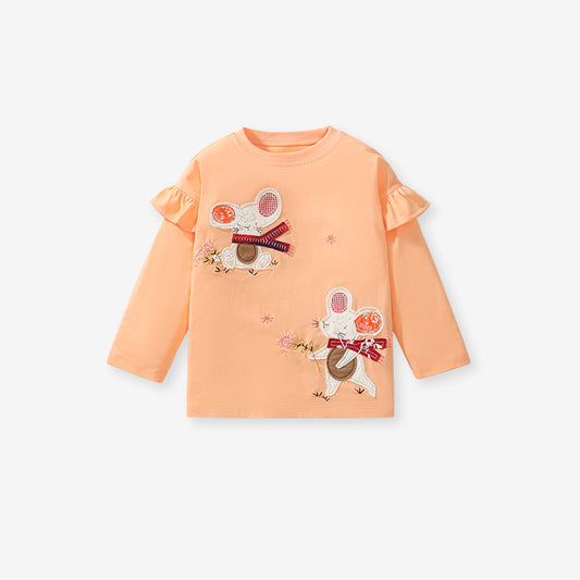 Arrival Autumn Girls’ Animals And Flowers Cartoon Pattern Long Sleeves T-Shirt In European And American Style For Summer