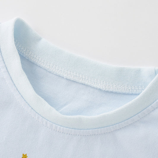 Cute Knit Round Neck Starry Unicorn Cartoon Girls’ T-Shirt In European And American Style For Summer
