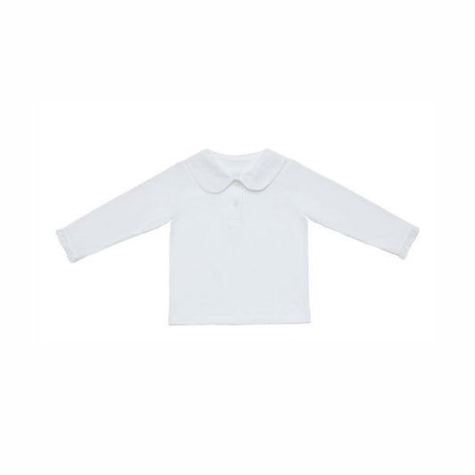 Summer Arrival Baby Girls Simple Long Sleeves Top with Embroidered Collar