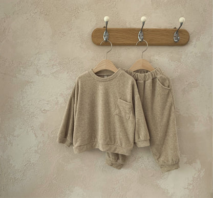 This clothing set is perfect for springtime! The solid color pullover top comes with a convenient pocket and matching pants. This unisex set is comfortable and stylish for your little one. Made with high-quality materials, it's durable and perfect for everyday wear. Upgrade your child's wardrobe with this versatile set.