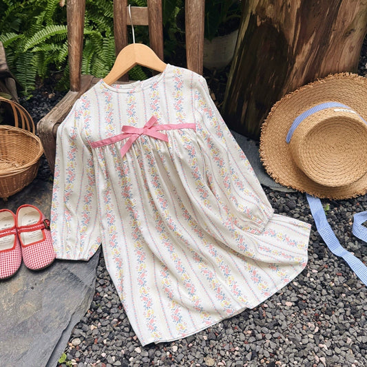 Autumn Arrival Baby Kids Girls Vintage Flowers Pattern Long Sleeves Crew Neck Dress