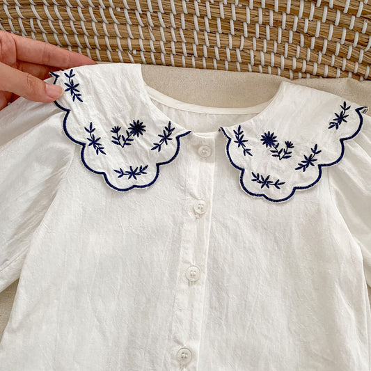 Spring Baby And Kids Girls Vintage White Shirt And Black Leather Shoes Clothing Set