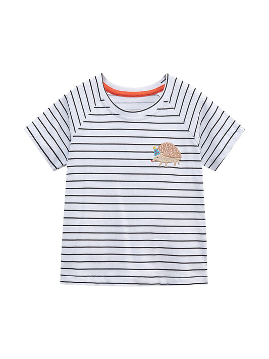 Baby Kids Girls Striped Hedgehog Logo Short Sleeves T-Shirt