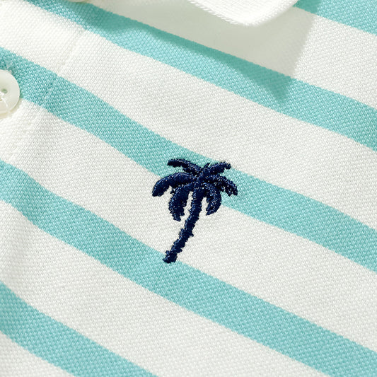 Baby Kids Light Blue Striped Short Sleeves Polo Shirt