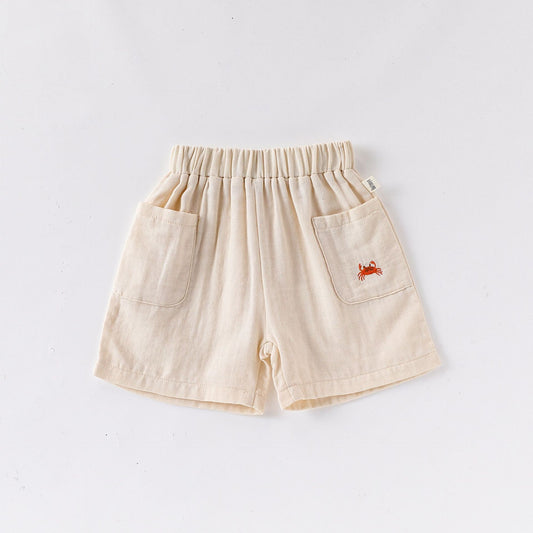 Summer Arrival Kids Unisex Cotton Casual Style Animals Embroidered Pattern Pocketed Shorts