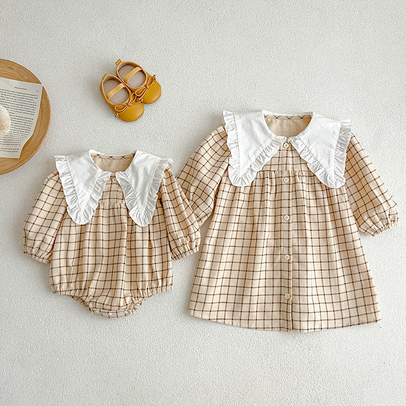 Spring Baby Girls Plaid Long-sleeved bodysuit and Dress – Princess Sister Matching Set