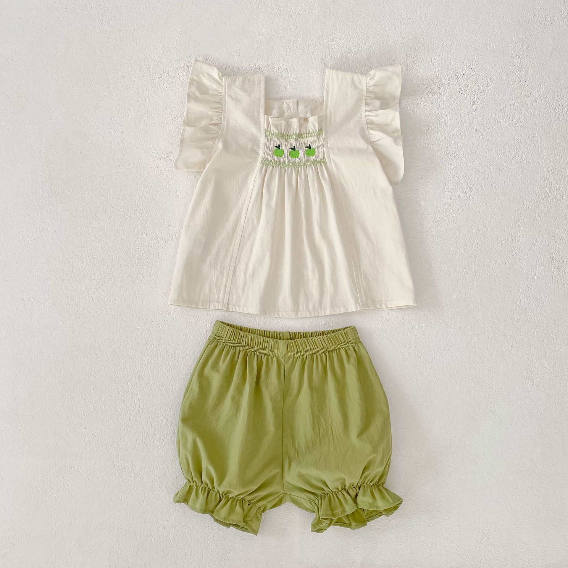 This elegant summer set features a delicate floral-patterned top with flutter sleeves, paired with simple, comfortable shorts. Designed for girls, it combines style and ease, perfect for warm days and playful moments. The lightweight fabric ensures breathability, while the refined design adds a touch of sophistication to everyday wear.