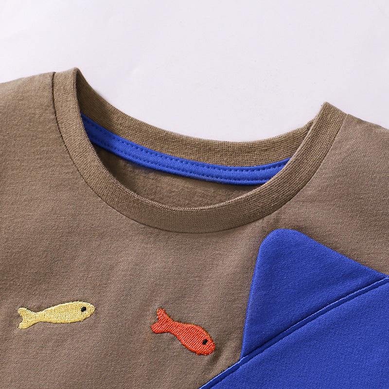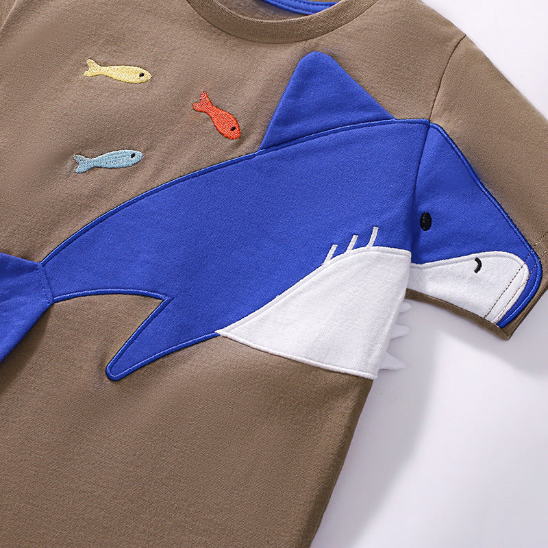 Summer Baby Kids Shark Cartoon Pattern T-shirt and Shorts Clothing Set for Boys