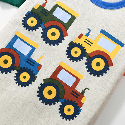 Summer Baby Kids Tractors Cartoon Pattern T-shirt and Green Shorts Clothing Set for Boys