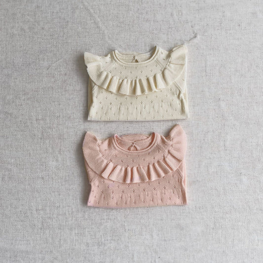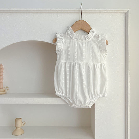 Baby Girl Solid Color Ruffle Design Breathable Knitted Onesies
