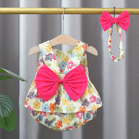Baby Solid Color Big Bow Patched Design Beautiful Princess Onesies