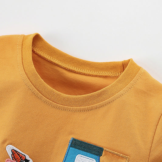Summer Arrival Boys’ Bulldozer Cartoon Pattern T-shirt in European and American Style