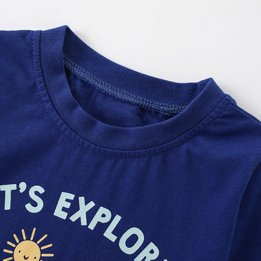 Summer Arrival Boys’ Letters and Sunset Cartoon Pattern T-shirt in European and American Style