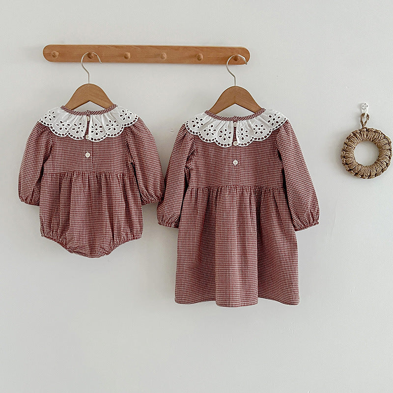 Unleash your little one's daring spirit with our Fashion Lace Collar bodysuit/Dress. The bold lace collar adds a touch of elegance, while the long sleeves protect against adventure. Perfect for your fearless baby or girl, ready to take on the world!