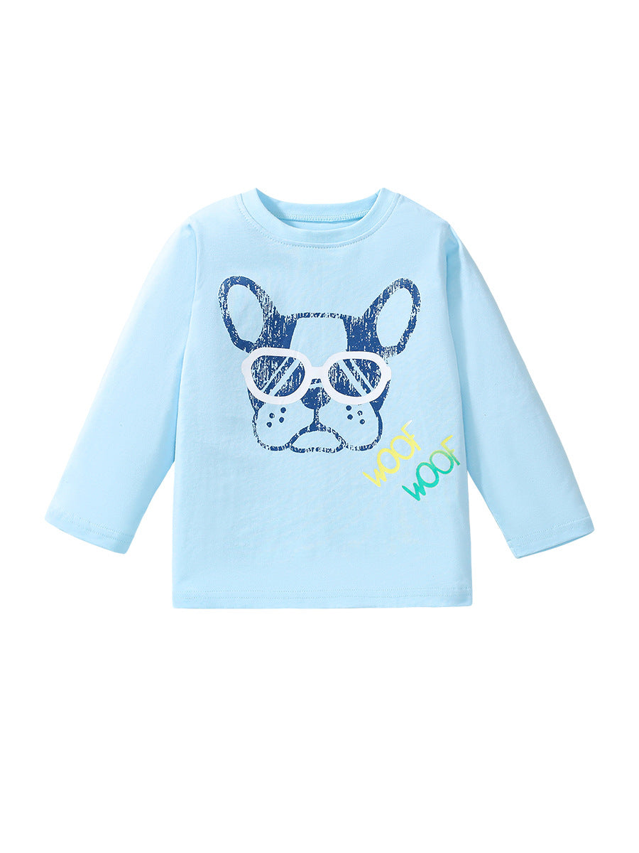 High Quality Autumn Kids’ Long Sleeves Cool Dog Pattern T-Shirt In European And American Style For Summer