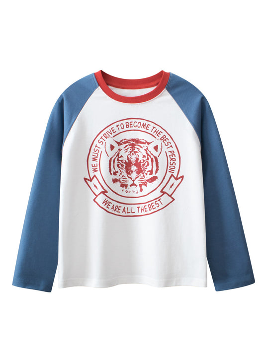 Arrival Kids Tiger Print Crew Neck Long Sleeves Color Patchwork Sweatshirt