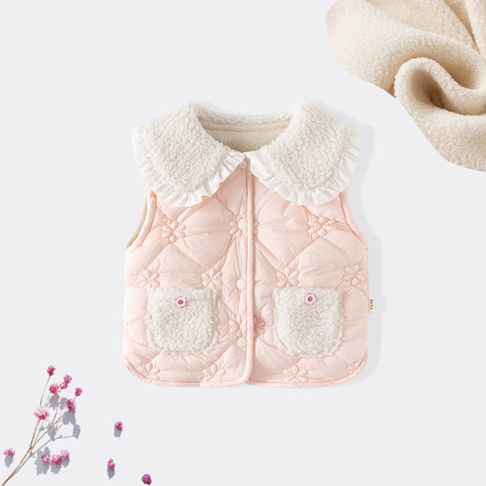 Adorable Infant Baby Girls Sleeveless Flowers Pattern Single Breasted Vest Coat