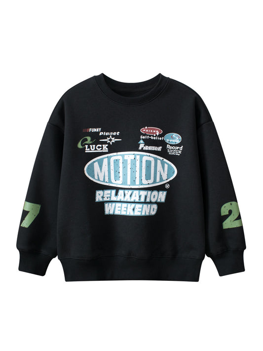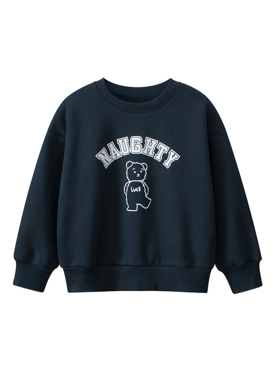 Arrival Boys Cartoon Print Crew Neck Long Sleeves Thick Sweatshirt