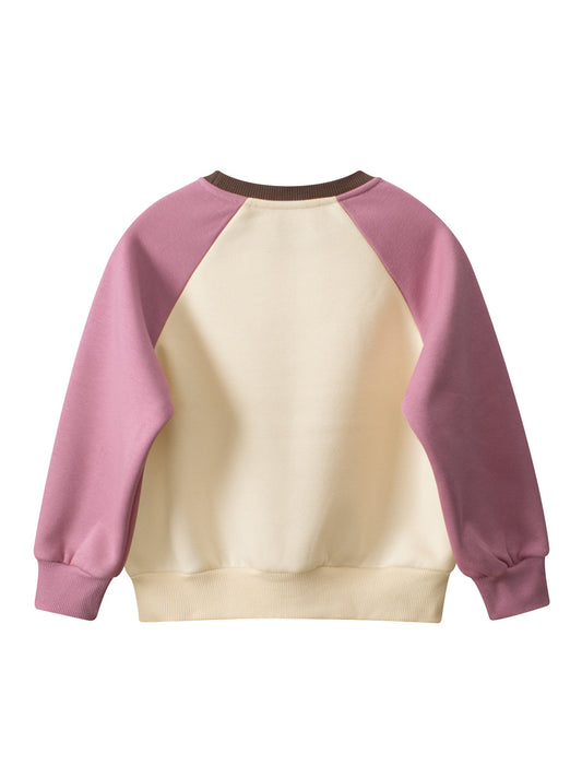 Arrival Girls Cartoon Print Crew Neck Long Sleeves Color Patchwork Sweatshirt
