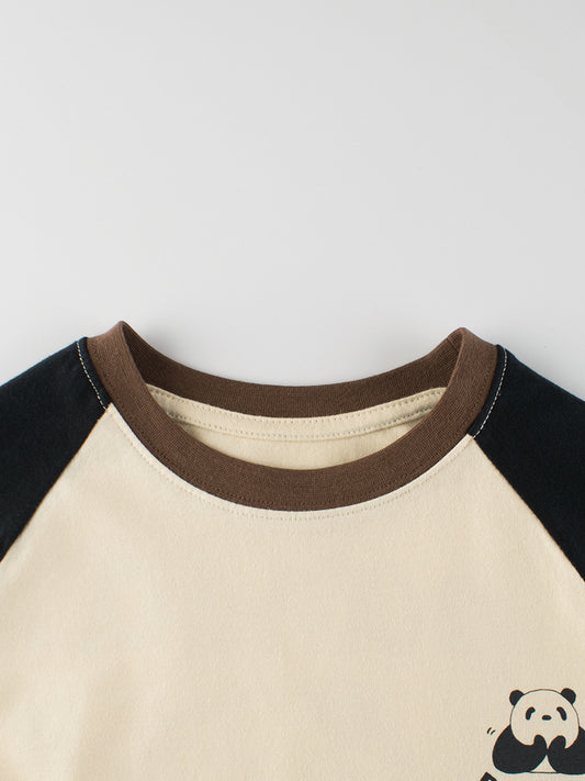 Arrival Girls Kids Cartoon Panda Pattern Crew Neck Long Sleeves Simple Top