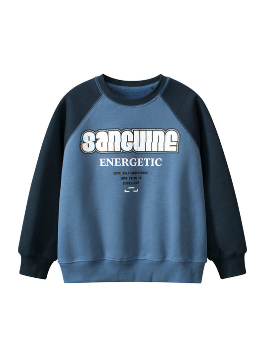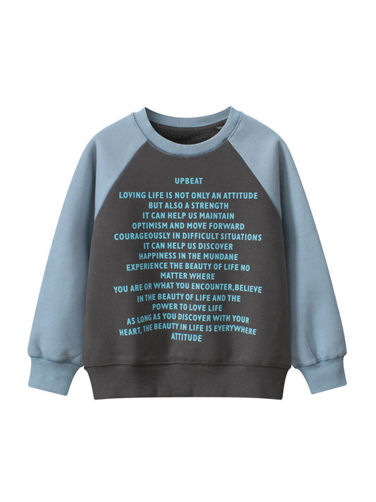 Arrival Kids Letters Print Crew Neck Long Sleeves Color Patchwork Sweatshirt