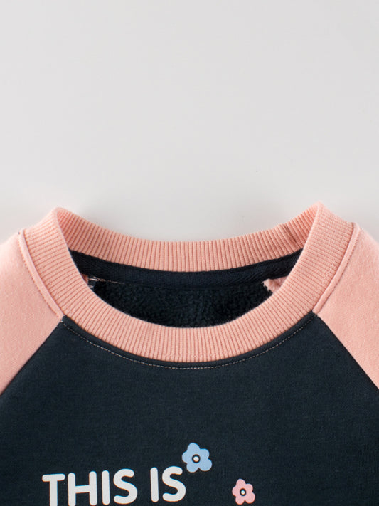 Arrival Girls Cartoon Print Crew Neck Long Sleeves Color Patchwork Sweatshirt