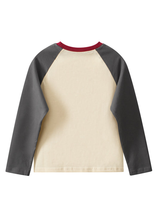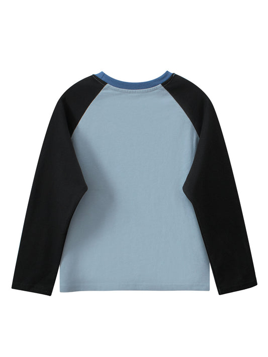 Autumn and Winter Arrival Kids Boys Letters Print Crew Neck Long Sleeves Color Patchwork Sweatshirt
