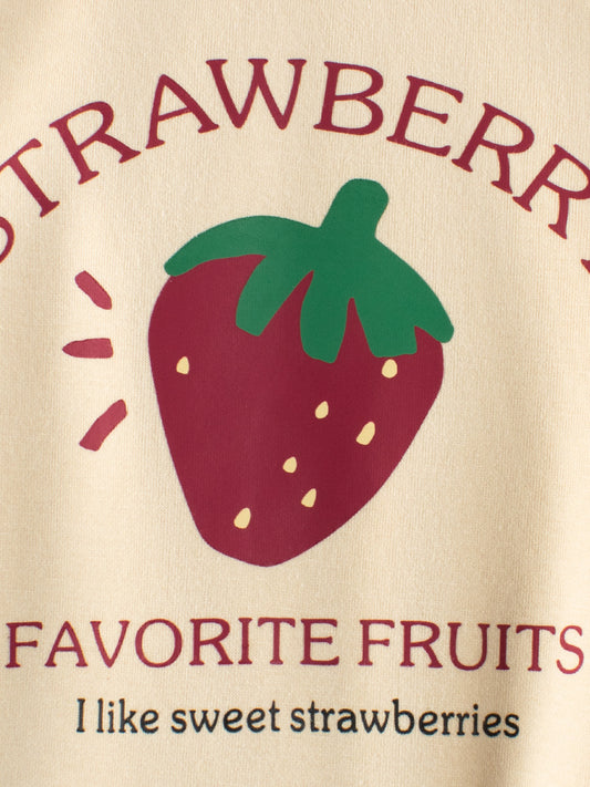 Autumn Arrival Kids Strawberry Print Crew Neck Long Sleeves Color Patchwork Sweatshirt