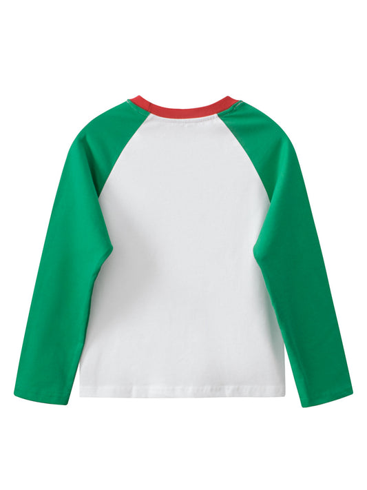 Autumn Arrival Kids Girls Teddy Cartoon Print Crew Neck Long Sleeves Color Patchwork Shirt
