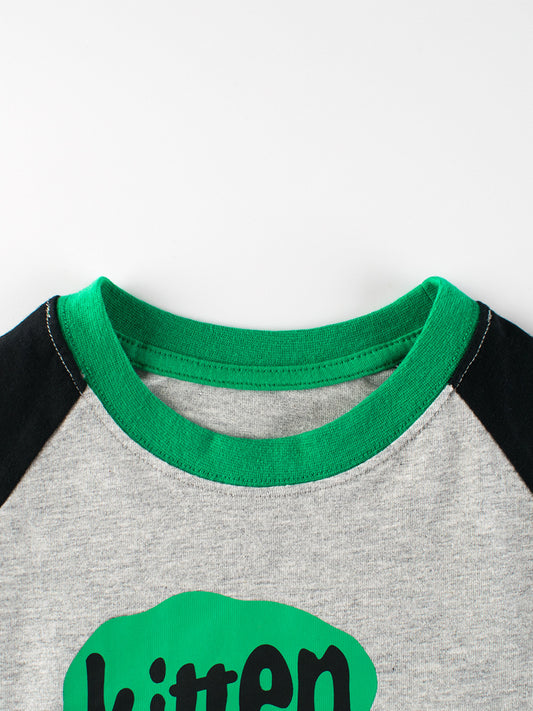 Arrival Kids Boys Letters Print Crew Neck Long Sleeves Color Patchwork Top