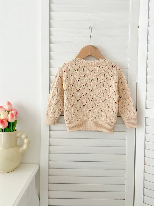 Autumn Arrival Baby Kids Girls Comfortable Hollow-out Argyle Knitted Long Sleeves Cardigan