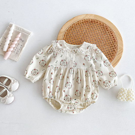 Autumn Arrival Baby Girls Long Sleeves Floral Print Romper Bodysuits