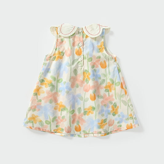 Summer Arrival Baby Girls Cute Floral Printed Pattern Sleeveless Dress with Collar