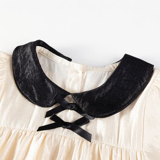 Summer Arrival Baby Girls Cute Color Patchwork Butterfly-bow Decorated Short Sleeves Dress