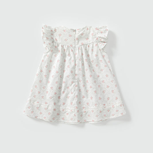 Summer Arrival Baby Girls Cute Floral Embroidered and Printed Pattern Fly Sleeves Dress