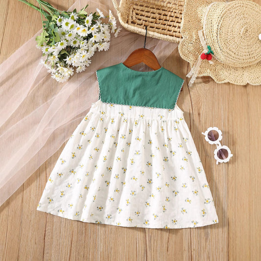 Summer Baby Kids Girls Floral Sleeveless Color Patchwork Collar Dress