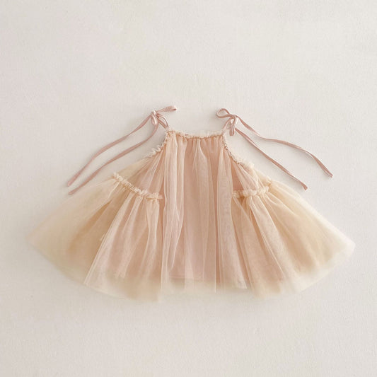 Summer Arrival Sleeveless Solid Color Tulle Dress for Stylish Girls