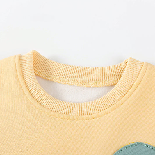 Winter and Autumn Girls Dinosaurs Cartoon Pattern Long Sleeves Sweatshirt and White Pants Clothing Set