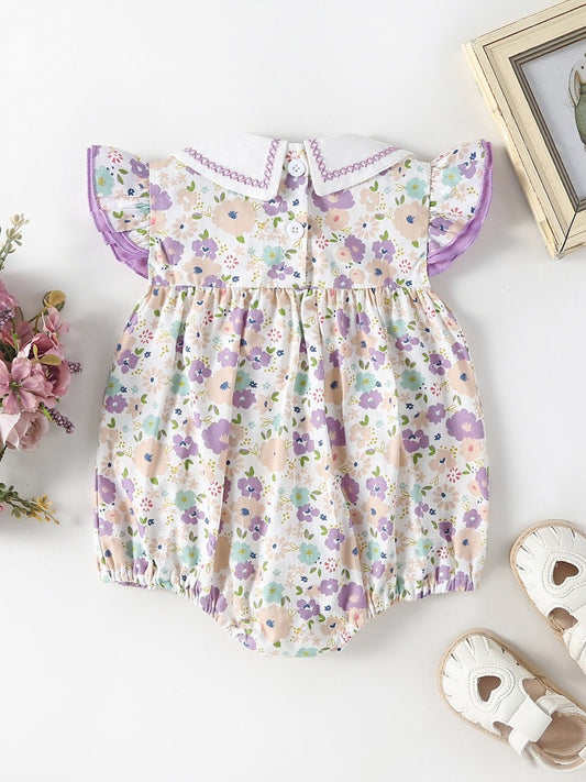 Summer Hot Selling Baby Girls Floral Pattern Fly Sleeves Embroidered Collar Onesies