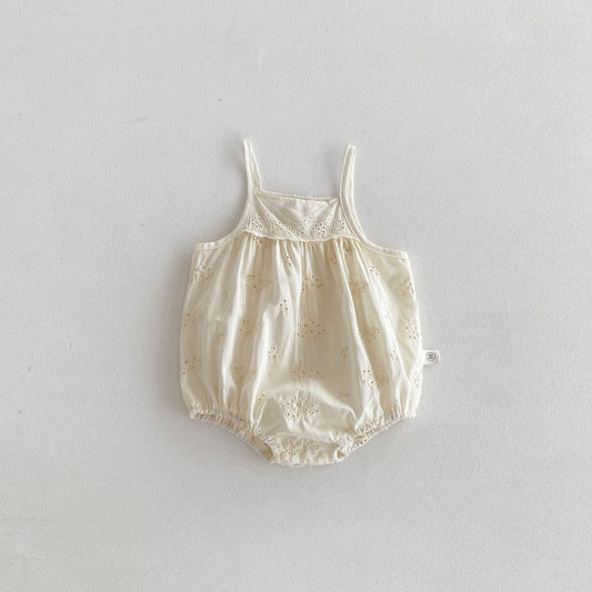 Summer Baby Kids Girls Flowers Embroidery Pattern Simple Sleeveless Strap Onesies