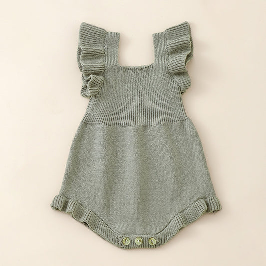 Summer Arrival Baby Girls Solid Color Fly Sleeves Square Neck Knitted Onesies