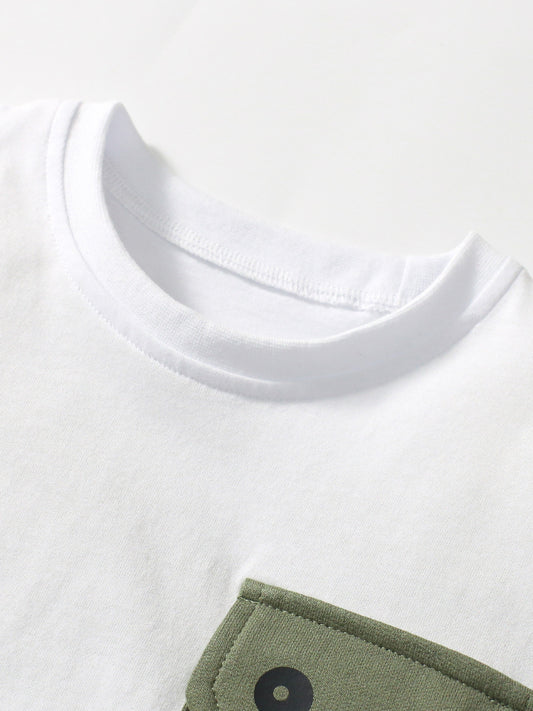 Summer Baby Kids Boys Emergency Cars Cartoon Pattern T-Shirt And Solid Color Shorts Clothing Set
