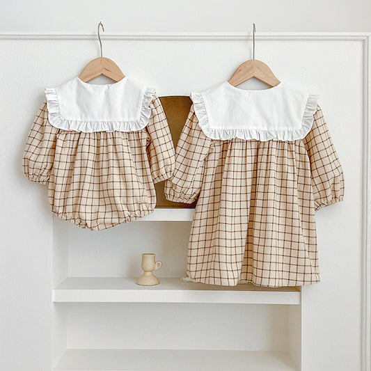 Spring Baby Girls Plaid Long-sleeved Onesies and Dress – Princess Sister Matching Set